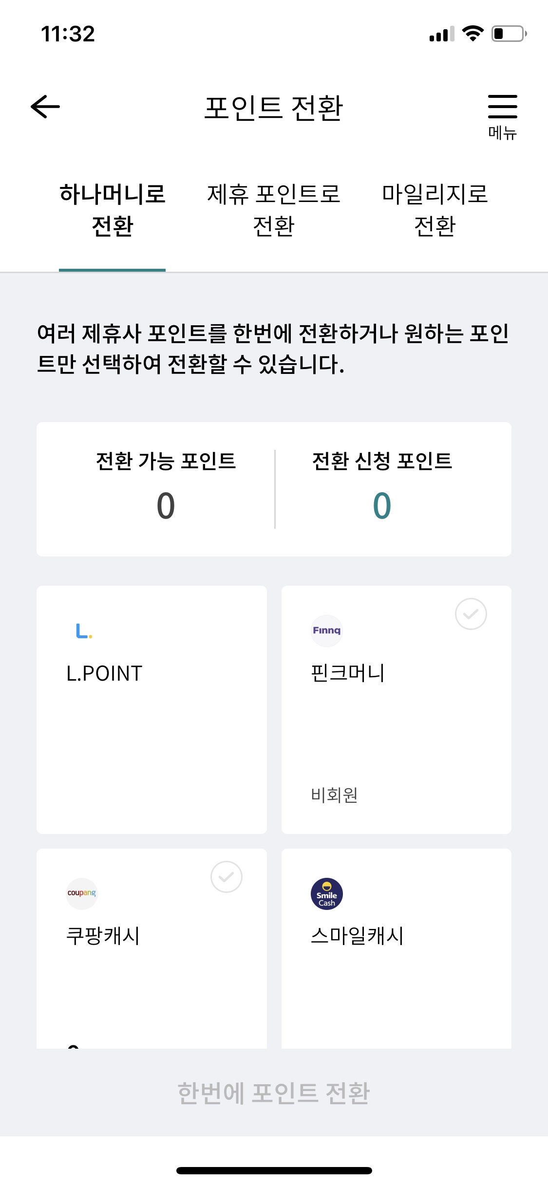 엘포인트, 쿠팡캐시, OK캐시백 등의 포인트를 하나머니로 전환 할 수 있고,